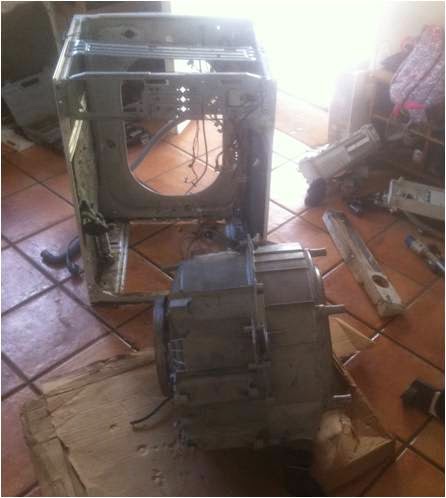 Lástima no haber conocido el ESTANDAR de desmontaje antes de empezar. (Y es que cada tarea debe tener su estándar y aunque es verdad que no me dedico a desmontar lavadoras, probablemente podría haber encontrado algo en internet…). El resultado un par de horas perdidas en desmotar y montar piezas que no debía haber tocado y el riesgo de que la lavadora no volviese a funcionar.La mayor decepción fue cuando descubrí que el tambor es de plástico termosellado y no hay posibilidad de desmontarlo. Sólo había dos soluciones, comprar un tambor nuevo o comprar una lavadora (tiene varios años y muchos kilómetros). En cualquiera de los dos casos, decidí que dado que el tambor no tenía solución “civilizada” merecía la pena forzarlo a ver si lo desenganchaba. Y lo conseguí con la ayuda de mi hermano. El culpable: